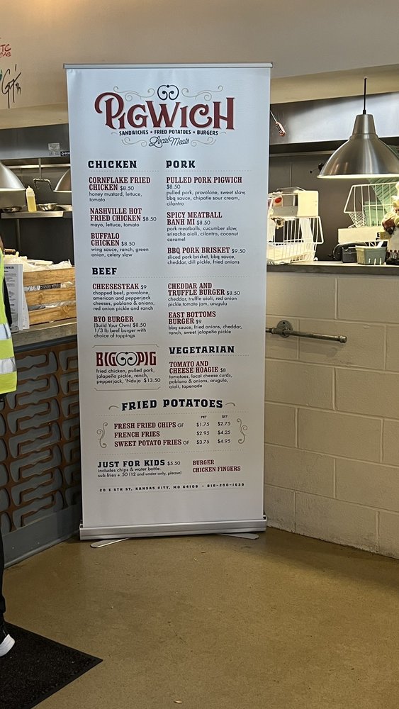 Introducing Pigwich, a casual restaurant in Kansas City known for its mouthwatering BBQ sandwiches, creative sandwiches, and delicious burgers. Located at 20 E 5th St Ste 101C, Pigwich offers delivery, takeout, and reservations, making it a convenient dining option. The menu features unique offerings like the Jalapeno Popper BBQ sandwich, the Banh Mi sandwich, and the B.Y.O. Burger where you can customize your toppings. The reviews rave about the quality and flavors of the dishes, with customers praising the brisket sandwich and Pigwich sandwich as must-tries. With both indoor and outdoor seating, Pigwich provides a charming atmosphere to enjoy their flavorful creations. Don't miss out on the opportunity to experience the delicious offerings at Pigwich for yourself.